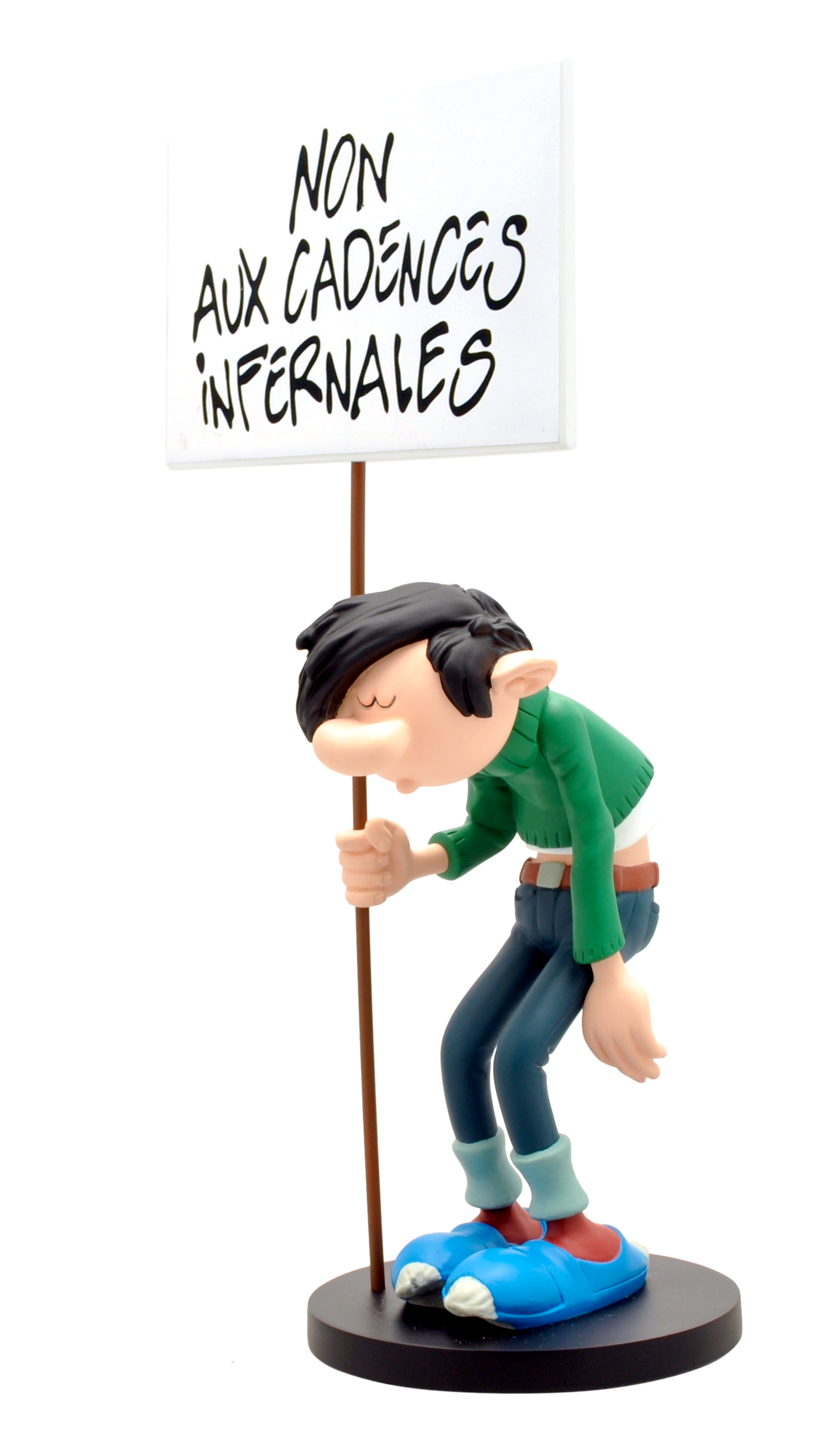 FIGURINE DE COLLECTION GASTON ET SA PANCARTE - NON AUX CADENCES INFERNALES